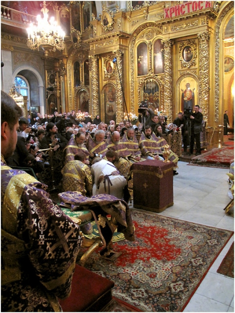 В Великий Четверг Церковь вспоминает установление Таинства Евхаристии на Тайной Вечере – последней трапезе Спасителя со учениками. В этот день все православные причащаются святых Христовых таин. Литургия Великого Четверга по чину святителя Василия Великого совершается в соединении с вечерней, поэтому будьте готовы к тому, что служба долгая. После Тайной Вечери Христос, показывая Свое смирение, омыл ноги ученикам, что также нашло отражение в богослужебной практике Церкви. Чин омовения ног совершается архиереем после Литургии. Он во образ Христа омывает ноги двенадцати священнослужителям. В ХХ веке в Русской Церкви обряд не совершался. Был восстановлен только в 2009 году Патриархом Кириллом.