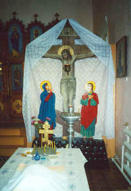 Позже, в 1992 году, администрацией района было передано здание по улице Школьная, 8, также ранее принадлежавшее церкви. Сейчас в этом доме размещается трапезная. Настоятелем храма Владыка Гедеон назначил протоиерея Павла Патрина. Помещение привели в порядок. Купол, кресты, колокольня были снесены в годы лихолетья. Необходимо было всё это восстановить, убрать перекрытие второго этажа. В 1989 году построили каменный забор вокруг церкви, железные ворота. Первую Божественную литургию служили в храме в 1990 году, на Рождество Христово. С этого времени началось регулярное богослужение в церкви. Одновременно велось строительство. За два лета перекрыли крышу церкви, установили купол с крестом, три маковки с крестами, построили колокольню. Были проведены большие реставрационные работы внутри церкви. 12 июля 1991 года, на праздник славных и всехвальных первоверховных Апостолов Петра и Павла, прихожане услышали первый колокольный звон. Восемь колоколов в звоннице. В 1993 году установили иконостас, который был изготовлен на Алтае.