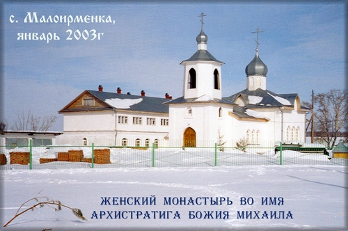История монастыря началась с восстановления разрушенного храма в селе Малоирменка. В 1996 году в это село из Владимира и Суздаля приехали три монашествующие. Ими была установлена палатка на месте разрушенного храма и совершено первое богослужение на Пасху 1996 года. Все жители деревни были в храме-палатке. Вскоре был обнаружен под асфальтом старый церковный фундамент, началось восстановление храма. Образовалась группа строителей из молодых людей-послушников. К празднику Святой Троице их было уже 15 человек, а поначалу лишь трое (в том числе был нынешний игумен Артемий, игумен Серафим, монахиня Мария). Через три с половиной месяца были установлены кресты на храме. Во время строительства богослужение не прерывалось, служили в палатке, затем после возведения стен, палатка была разобрана, служба продолжалась уже в храме. Следующий этап- восстановление в соседнем селе Козиха. Туда стали стекаться уже сестры. Когда их число достигло 12-ти человек, то стала идти речь о создании женского монастыря. По окончании основных работ по строительству храма в Козихе, сестры, по благословению епископа Сергия, были переведены в Малоирменку. И в 1998 году Указом Священного Синода был утверждён там епархиальный женский монастырь во имя Архистратига Божия Михаила и настоятельница обители - монахиня Мария (Серопян). Численность сестер стала быстро возрастать, остро стал вопрос жилья, поскольку, кроме храма и двух деревянных домиков, ничего не было. В строительстве женского монастыря огромную помощь оказал Козихинский мужской монастырь.