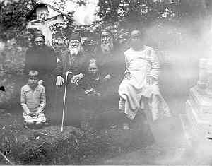 Археп Варфоломей ( возможно на Тобольском кладбище).Слева его секретарь - архимандрит Никандр(Вольянников), будущий Омско-Тюменский епископ. 1946 год