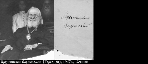 Архиепископ Варфоломей (Городцев) с автографом, 1947г., Ачинск