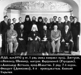 проф.Доктусов, о.Всеволод Шпиллер, митроп.Варфоломей (Городцев), о.Александр Ветелев, проф.Шабатин. 2-й ряд: 8-ой Василий Сарычев