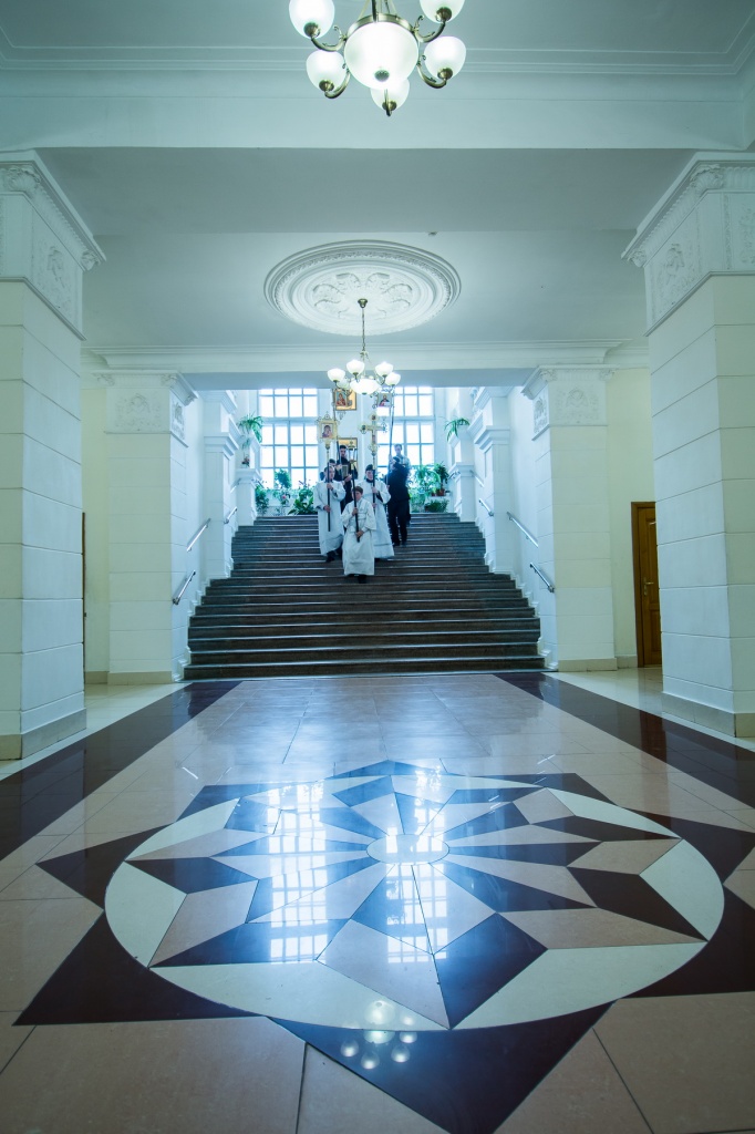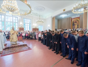 Сегодня был также совершен молебен перед началом нового учебного года. "Мы помолились, чтобы ученики, которые пришли в этом году в семинарию и пансион, находились под покровом святителя Тихона, чтобы они усваивали все преподаваемые им науки, особенно преуспевали в законе Божием, в изучении и соблюдении заповедей, чтобы Господь даровал учителям мудрость и разум, а учащимся послушание и открыл разум к усвоению назиданий", - сказал в напутствие преподавателям и семинаристам Владыка Тихон.
