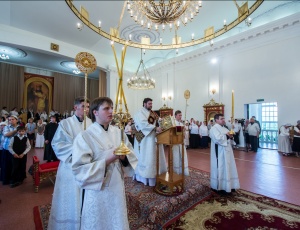 Митрополит Тихон: "Чтобы правильно воспитывать новое поколение, необходим эталон: на кого равняться, за кем следовать?"26 августа в день памяти святителя Тихона Воронежского, Задонского чудотворца, Митрополит Новосибирский и Бердский Тихон празднует день своего небесного покровителя. В этот день Владыка возглавил Божественную литургию и крестный ход в храме во имя святителя Тихона Задонского в здании Новосибирских духовных школ. По окончании молебна Владыка поздравил духовенство и прихожан, а также учащих и учащихся, с престольным праздником и днем памяти святителя Тихона.