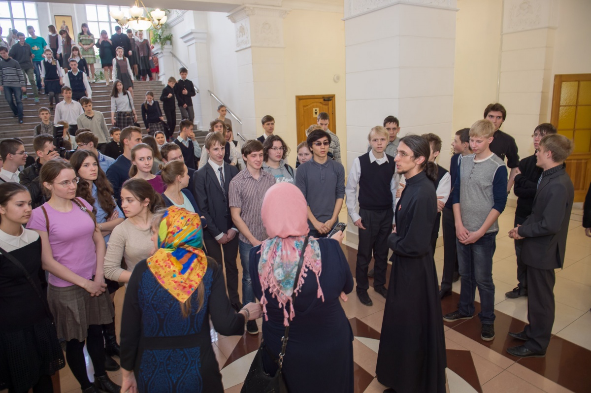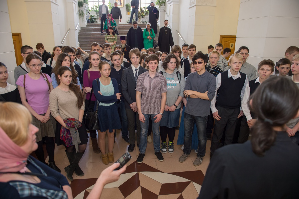 Для гостей также была организована экскурсия по семинарскому зданию, после которой в читальном зале библиотеки прошла встреча старшеклассников православных гимназий и семинаристов с Митрополитом Тихоном. Более часа длилась беседа о выборе жизненного пути, разграничении понятий добра и зла. Многие интересовались, как поступить в Духовную семинарию и пансион для старшеклассников.