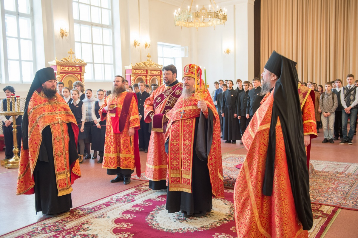 По окончании Божественной литургии в храме во имя святителя Тихона Задонского состоялся молебен, на котором Митрополит Новосибирский и Бердский Тихон обратился к учащим и учащимся с архипастрыским словом. "Здесь, в стенах семинарии, мы встречаемся с молодым поколением, которое, надеемся, изберет путь церковной жизни. Мы помним слова Спасителя: "Жатвы много, а делателей мало" (Мф. 9: 37). В Церкви всегда не хватает кадров, потому что мало кто хочет пойти за Христом и отдать Ему жизнь. Сегодня мы молимся, чтобы Господь открыл сердца нашей молодежи к восприятию слова Божия, чтобы они пошли за Христом как святые апостолы и жены мироносицы".
