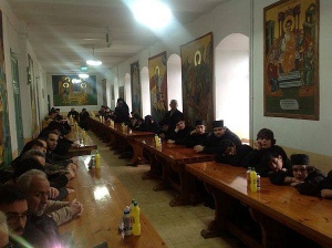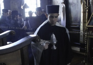 На правом клиросе во время богослужения пели монахи обители Григориат, в то время как на левом – преподаватели «Афониады» и учащиеся.