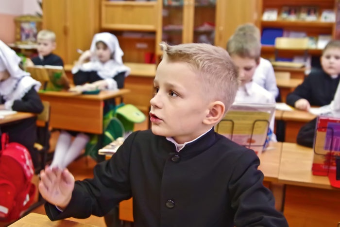 Попасть в гимназию очень сложно?Да, попасть в гимназию сложно. И не только потому, что туда стараются принимать только детей из воцерковленных семей, причем с первого класса, но и потому, что существуют предельные нормы наполняемости классов и при всем желании педагогов нельзя взять детей больше, чем положено. То есть просто нет мест, и освобождаются они крайне редко. Впрочем, иногда бывает, что дети поступают в гимназию со стороны. При этом им подчас не только сложно попасть, но и сложно учиться, потому что требования здесь высокие, уровень обучения гораздо выше, чем в среднем по городу. Один шестиклассник, к примеру, рассказал, что помогает делать уроки своему другу-семикласснику из обычной школы и это не доставляет ему особых трудностей.