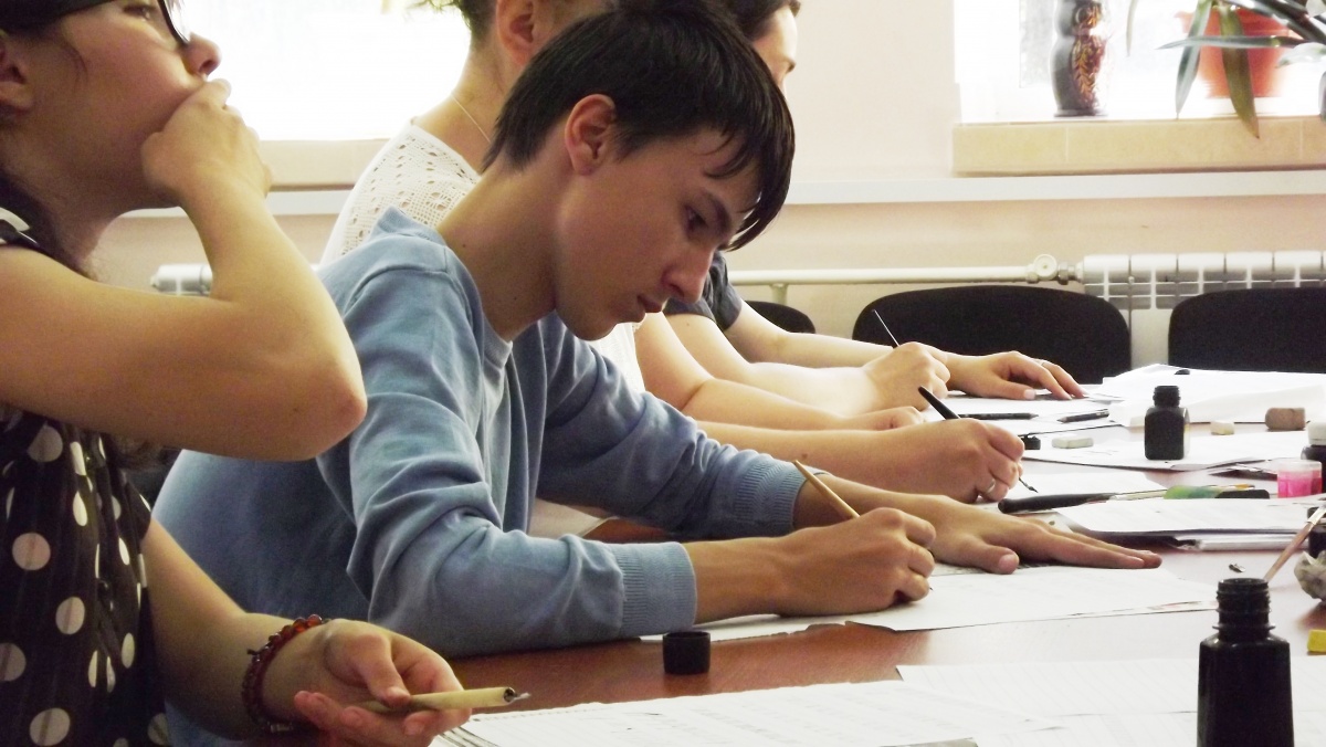 Учебный курс по письму остроконечным пером состоялся в рамках проекта «Художественное образование в Сибири: Кириллическая каллиграфия»В православной гимназии Игнатия Брянчанинова г. Новосибирска 6-7 августа прошел учебный курс «Каллиграфия для начинающих», в котором приняли участие преподаватели и ученики православной гимназии, преподаватели воскресных школ, начинающие каллиграфы и другие слушатели. Практическая часть курса включала освоение навыков письма остроконечным пером, занятия по формированию каллиграфического почерка, изучение росчерков как украшения рукописного текста, упражнения по арт-каллиграфии. Слушатели высоко оценили практическую значимость курса. Предложенные опытным преподавателем упражнения и методические рекомендации позволят продолжить самостоятельное освоение письма остроконечным пером, а также могут быть включены в педагогическую практику. Учебный курс был организован при поддержке международного грантового конкурса «Православная инициатива».