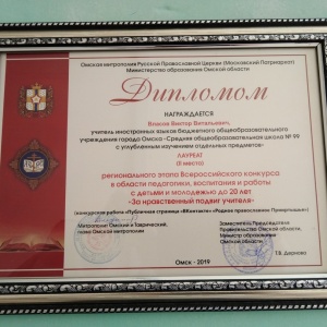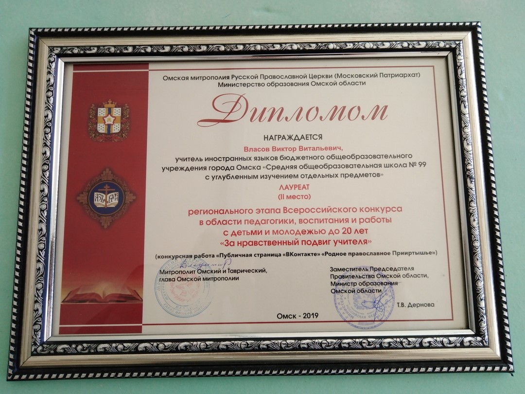 ![]() Автор портала "Образование и Православие" стал лауреатом в конкурсе "За нравственный подвиг учителя"Автор благодарит вдохновителей его творчества - специалистов Омской епархии: Светлану Петровну Баранцеву, Тамару Викторовну Похитайло, Елену Михайловну Чешегорову и православных священнослужителей и волонтёров г. Омска. Автор благодарит вдохновителей его творчества - специалистов Омской епархии: Светлану Петровну Баранцеву, Тамару Викторовну Похитайло, Елену Михайловну Чешегорову и православных священнослужителей и волонтёров г. Омска.