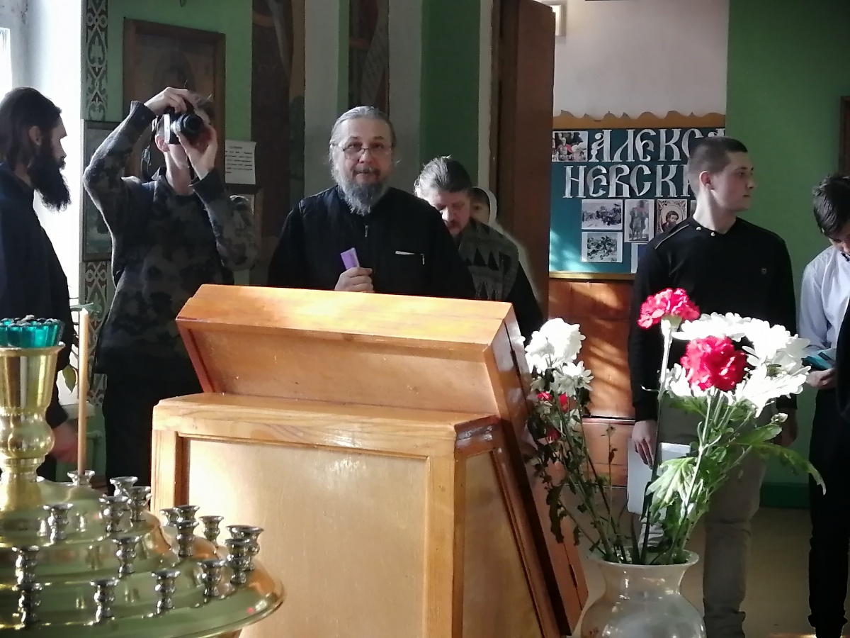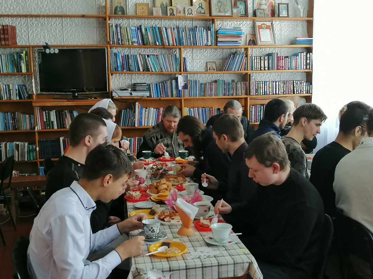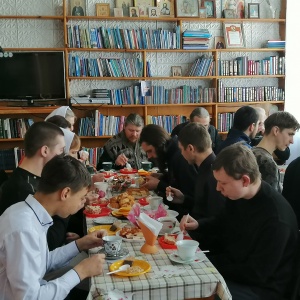 ![]() Студенты Новосибирской духовной семинарии посетили мужской монастырь в честь Всех Святых в земле Сибирской просиявших в Черепаново13 февраля, в рамках празднования Международного дня православной молодежи, в Черепаново приехали студенты Новосибирской православной духовной семинарии со своим педагогом, проректором по воспитательной работе, кандидатом философских наук, иеромонахом Платоном (Флах). Цель приезда – знакомство с жизнью мужского монастыря в честь Всех Святых в земле Сибирской просиявших и участие в богослужении. Встреча была неожиданной, но приятной. Началась она с совместного Молебна перед началом всякого дела, чтобы получить поддержку и помощь Господа нашего Иисуса Христа. Затем воспитанники воскресной школы, педагоги, семинаристы исполнили Тропарь и Величание святителю Алексию, митрополиту Московскому – небесному покровителю нашего храма. После такого духовного начала все прошли в библиотеку, где всех ожидал празднично накрытый стол и продолжение беседы уже за чашечкой чая. Воспитанники воскресной школы узнали о распорядке жизни семинаристов, предметах, которые они изучают, и проблемах, возникающих в процессе обучения. Наш выпускник, Павел Головин, рассказал об учебном заведении – Алтайском Государственном педагогическом институте, где он учится на историческом факультете, прочитал стихи собственного сочинения. В уютной обстановке время прошло незаметно, но плодотворно.