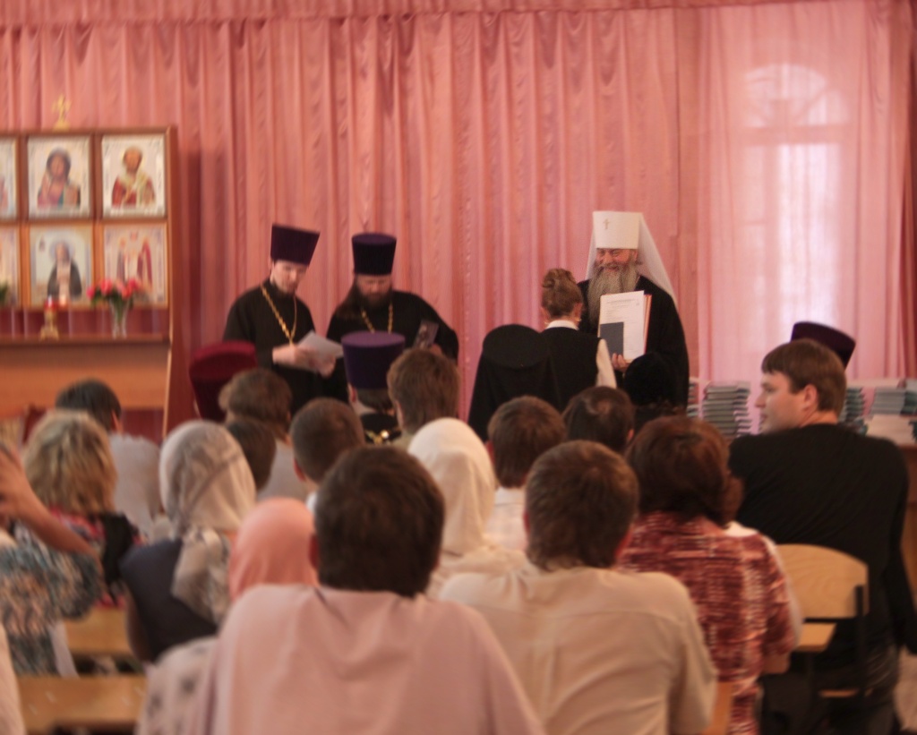 Прошел выпускной вечер Новосибирских Духовных ШколВот и пролетели незаметно 2 года обучения в НСМПБИ. Вот и пролетели незаметно 2 года обучения в НСМПБИ. Кажется, только вчера мы подавали документы для поступления, писали вступительное сочинение и вот сегодня мы уже выпускники курсов. И казалось бы нас должна переполнять радость, но на душе грустно… Ведь мы больше не сможем так часто видеть своих преподавателей, на перемене докучать им своими вопросами, после занятий все вместе идти на остановку горячо обсуждая прожитый день и то новое, что мы узнали. Как этого будет не хватать. После отслуженного молебна все выпускники и гости прошли на торжественную часть вручения. Дипломы и книги с памятными надписями нам вручал наш Владыка – Митрополит Тихон. Многие из выпускников, пройдя только первую ступень обучения продолжат учиться на курсах приходских сотрудников или на катехизаторском отделение Богословского института. Лично мне 2 года обучения дали базовый фундамент знаний, который помогает как в жизни в общении с людьми, так и в служении на приходе. Благодаря Богословским курсам в моей жизни появилось много новых православных друзей. Выпускница Курсов приходских сотрудников.