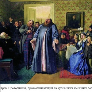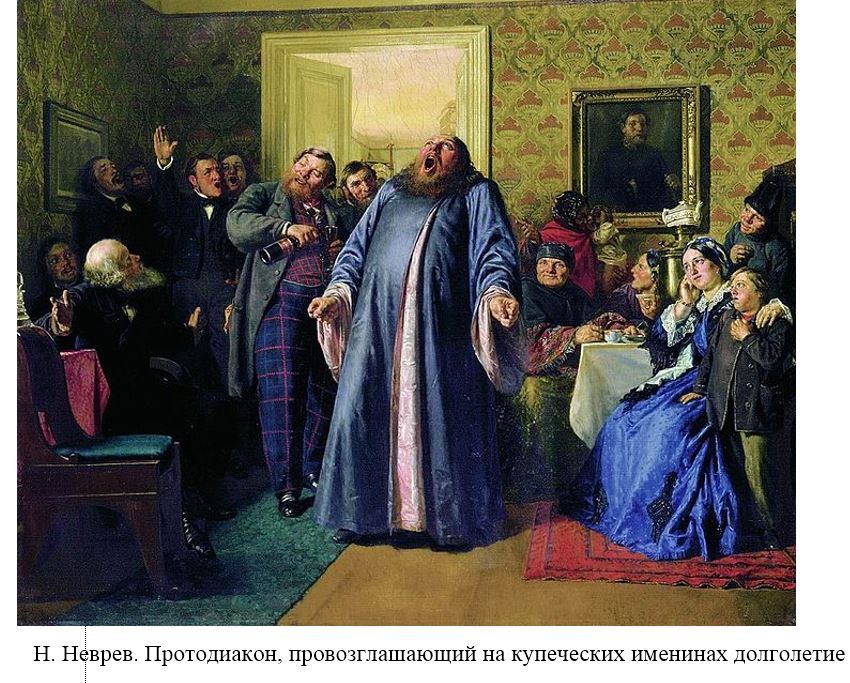 Н. Неврев. Протодиакон, провозглашающий на купеческих именинах долголетие