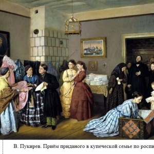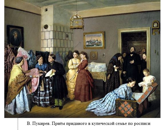 В. Пукирев. Приём приданого в купеческой семье по росписи