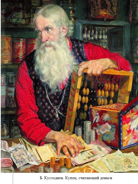 Патриархальный купеческий уклад ушёл в прошлое. Сейчас все эти длиннобородые «купчины толстопузые» в подпоясанных широкими кушаками кафтанах, стёганых поддёвках и смазных сапогах, представленные в живописных картинах стародавнего быта за непременным ведерным самоваром, кажутся слишком диковинными, причудливыми, архаичными. Однако истовое служение не Богу, а мамоне делает их узнаваемыми и сегодня. Смысл коммерческой деятельности этих лавочников и лабазников заключался в том, чтобы смошенничать, обмерить, обвесить, обсчитать, обмануть покупателя, пусть даже в мелочах. Такие нечистые на руку, мелочные плуты-торгаши до сих пор встречаются на каждом шагу.