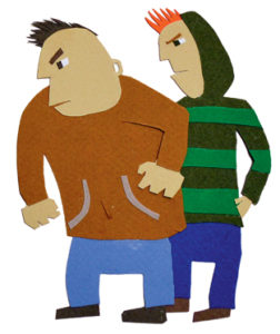 В подростковом периоде у ребят с этим все гораздо сложнее, чем в детстве. Пара лет разницы в возрасте делает противника недосягаемым для симметричного ответа. Тут все влияет — и физическое развитие (между 16 и 14 годами — целая пропасть), и статусный момент — "старшие" неприкосновенны. Но, пожалуй, тяжелей всего переживается какой-то иррациональный животный страх, который обалдуи-старшеклассники умеют внушать ребятам всего-то на пару-тройку лет младше их самих. У нас в школе сложилась разновозрастная гоп-компания, находившая для себя радость в унижении тех, кто в нее не входил. Причем речь не шла об избиениях. Это была сложная многоступенчатая система морального подавления, состоявшая из подзатыльников, оплеух, пинков под зад, оскорблений, публичных "наездов" и множества других мелких пакостей, делавших жизнь невыносимой. Вот у этой шайки и попали под раздачу мои сыновья в самом непростом своем возрасте.