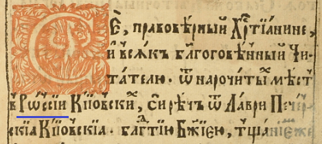 А, к примеру, в первом же киевском печатном издании, знаменитом «Часослове» 1617 г. значится «Россия» - с заглавной буквы. Цитируем предисловие Захария Копыстенского, в котором он поясняет читателям, где напечатана книга: «от нарочитых мест в России Кийовских, сиречь от Лавры Печерскиа Кийовскиа» (илл. 3 ) [9]. Далее в «Часослове» приводятся с заглавных букв имена русских святых. Видимо, передача имён собственных в южнорусских изданиях с заглавной буквы возникла под влиянием латинской традиции (как и позднейшая реформа письма Петра I), в данном случае под влиянием Польши.