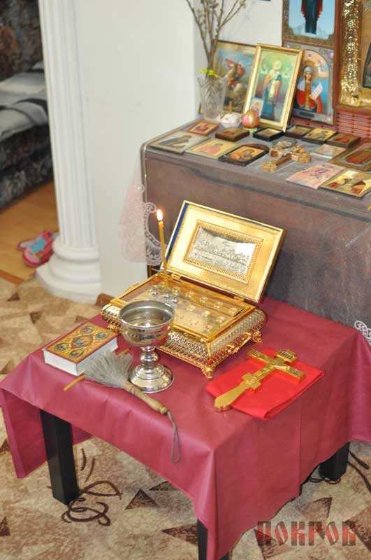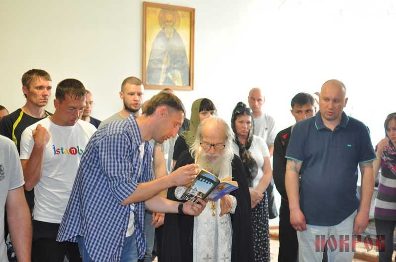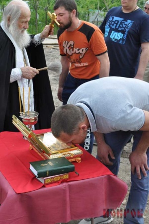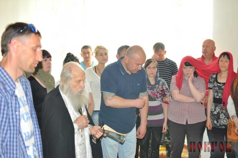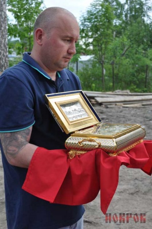 После освящения игумен Владимир посетил дом на ул. Байдукова, 15, где собралось «Группы взаимопомощи Покров». Совершил молебен об исцелении от недуга пьянства и наркомании с чтением акафиста Божией Матери «Неупиваемая Чаша». Каждый приложился к мощам десяти Апостолов Христовых. о. Владимир провел душеполезную беседу и также с каждым желающим поговорил индивидуально. И вот теперь, когда Ащеулов Алексей Владимирович, получил свидетельство на землю, нас всех переполняет радость, и в честь этого события 05.06.16 г. к нам приехал настоятель храма Михаила Архангела г. Новосибирск игумен Владимир Соколов с частицами мощей десяти Апостолов Христовых и совершил Водосвятный молебен на участке земли.Справка. Межрегиональная Благотворительная Общественная Организация по социальной адаптации граждан «Покров» ведет борьбу с алкоголизацией и наркотизацией общества.