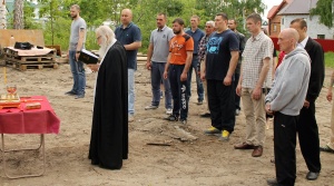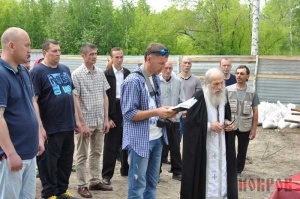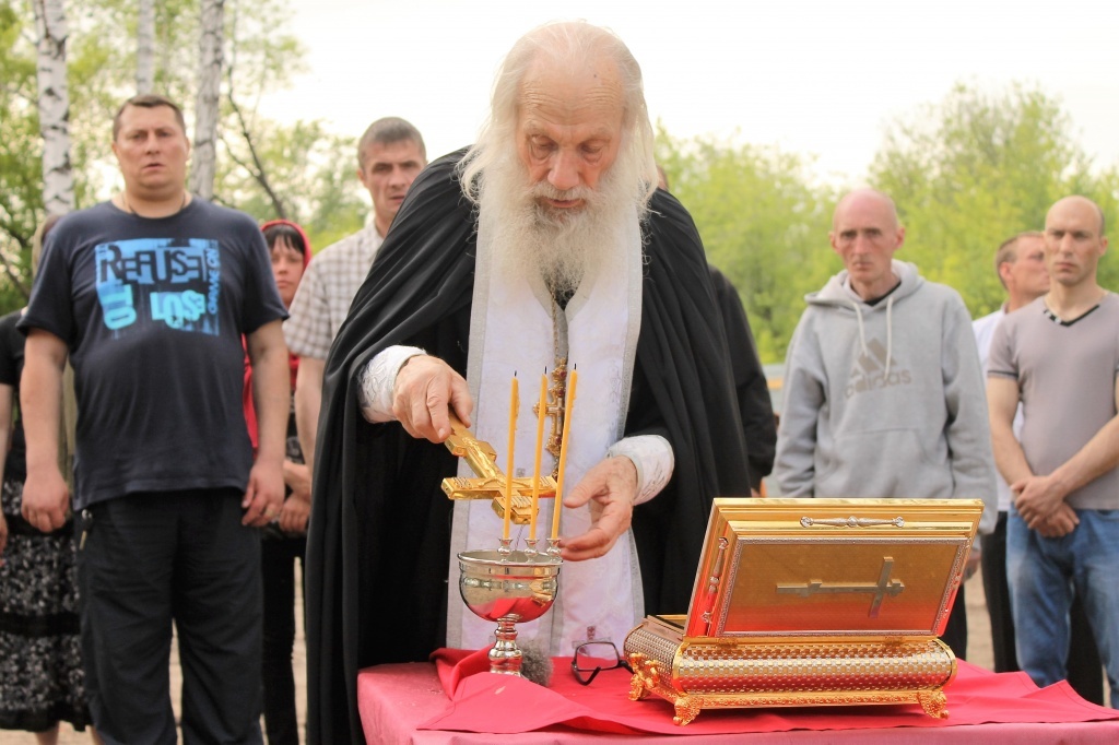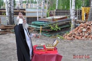 5 мая настоятель храма Михаила Архангела г. Новосибирск игумен Владимир Соколов прибыл на место под строительство с частицами мощей десяти Апостолов Христовых и совершил водосвятный молебен.