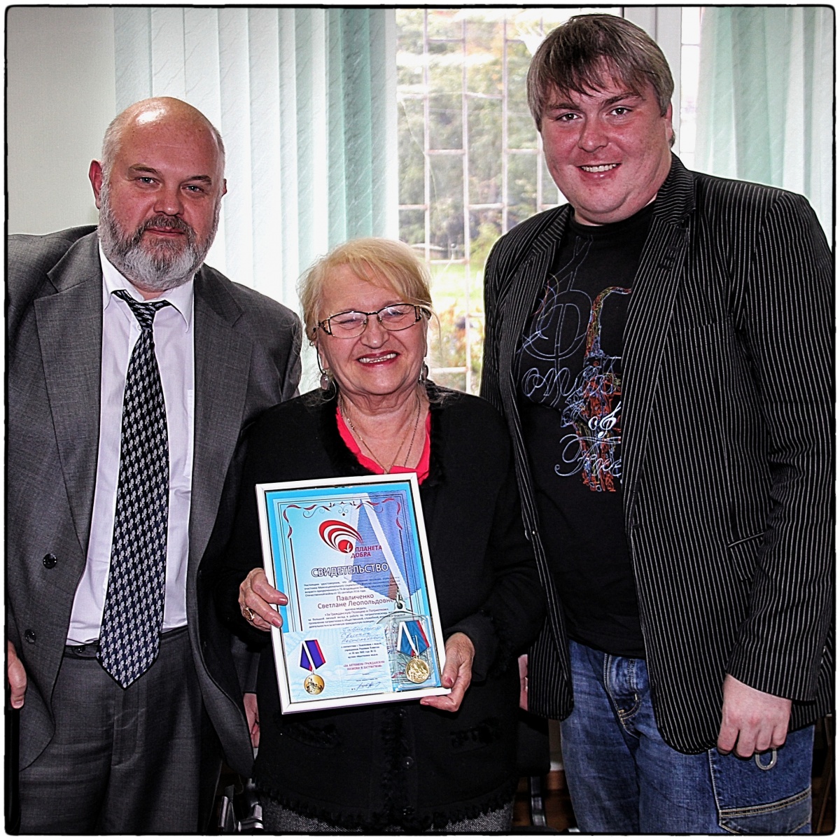 В завершении круглого стола состоялась церемония награждения. Общественную медаль «За активную гражданскую позицию и патриотизм» вручили Светлане Павличенко, директору Центра духовного возрождения «Знамение», Сергею Кузину, представителю Московской экологической общественной организации и Валентине Батиевской, заместителю руководителя Ресурсного центра НКО «Рублевское шоссе».