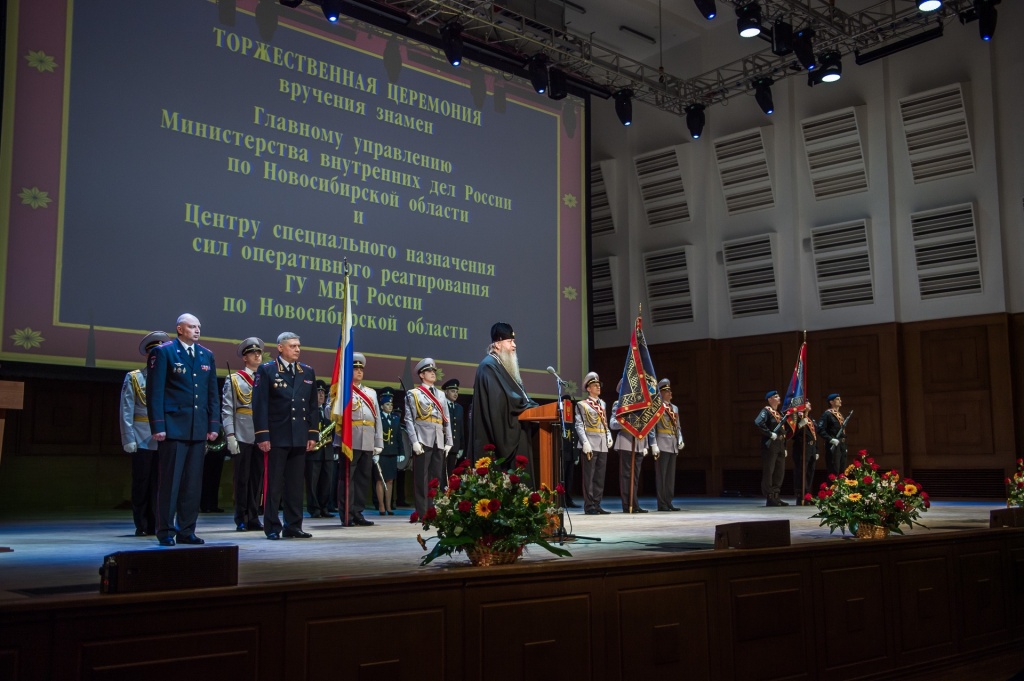 Митрополит Тихон принял участие в церемонии вручения знамени ГУ МВД России по Новосибирской области.