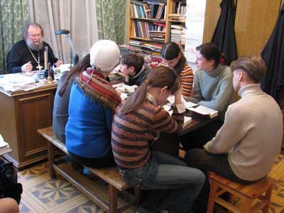 Как воцерковиться взрослому человеку? Опробованные методики для воскресных школВ православном Символе Веры сказано: "Верую во Едину Святую, Соборную и Апостольскую Церковь". Таким образом, Сама Православная Церковь именует Себя "Апостольской", указывая этим на Свое происхождение. Апостольство означает "посланничество". Это апостольское служение Православная Церковь осуществляет разными путями. И один из них - церковно-приходские школы для взрослых. В Церкви, естественно, есть люди разных возрастных групп. И если воцерковлению детей уделяется много внимания, о проблемах детских воскресных школ пишут, их обсуждают, то воцерковлению взрослых прихожан уделяется крайне мало внимания. Но ведь Церковь не из одних детей состоит. Большая часть прихожан - взрослые люди. И если мы постараемся объективно оценить эффективность работы благополучных детских воскресных школ, то, наверное, процент воцерковления обучавшихся, в лучшем случае, составит 5-10% от общего количества обучающихся. А вот эффективность воцерковления взрослых в хороших взрослых воскресных церковно-приходских школах составит 80-90%, а то и более. И, тем не менее, катехизации взрослых уделяется крайне мало внимания. В настоящее время абсолютное большинство прихожан не имеют религиозного воспитания. Они из мира неверия приходят в мир веры. Но вот какими они станут прихожанами - то ли поверхностно воспринявшими ритуально-обрядовую жизнь Церкви, то ли сознательными и активными членами Церкви - зависит от того, чему мы научим их в наших приходах. ![]() Мне приходилось беседовать с верующими людьми, которые обучались во взрослых группах воскресных школ. Они прошли курсы по изучению догматики, церковной истории, литургики, но совершенно не понимали самого важного - Христова учения, Евангелия, поскольку в этих воскресных школах о Евангелии говорили мало и неглубоко. Конечно, могут существовать самые разные подходы к обучению взрослых основам христианского вероучения. Но цель должна быть одна - глубокое принятие Христова Евангелия умом и сердцем, и вследствие этого, искреннее и глубокое воцерковление. Хотелось бы остановиться подробнее на возможных подходах к преподаванию. 1. Коснусь опыта работы нашей взрослой воскресной церковно-приходской школы. Когда двадцать лет она только появилась, перед нами сразу же встал вопрос: что изучать и по какой программе? Я обратился за советом к священнику Глебу Каледе. И получил от него такой ответ: "Изучай с прихожанами Символ Веры". Мы так и сделали. С самого начала была исключена лекционная форма работы. Занятия, скорее, напоминали семинар. У всех присутствующих был в руках Новый Завет. Я готовился к каждому занятию и составлял краткий конспект изучаемой темы. Выписывал в тетрадь указанные цитаты из Священного Писания, которые будут использованы на ближайшем занятии. Продумывал, что нужно обсудить и к каким выводам прийти на занятии вместе с прихожанами. Никаких книг, кроме Священного Писания, у нас на столах не было. Если было необходимо, то отдельные цитаты из святых отцов я зачитывал по конспекту. Мы изучали темы по Новому Завету. Тексты читали на русском языке. При необходимости сравнивали славянский и русский переводы. Во-первых, мы все начинали четко понимать, что истины нашей веры основаны на Откровении Божием. Во-вторых, читая так отры