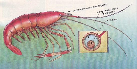 Еще поучительная иллюстрация – органы равновесия креветки.