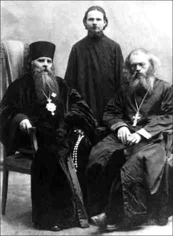 Епископ Иннокентий (Пустынский) и священник Валентин Войно-Ясенецкий (справа) По возвращении в Ташкент пришлось заняться неотложными епархиальными делами. Но вскоре новоявленный архиерей был арестован как сторонник Патриарха Тихона и выслан в Сибирь, чем начался 11-летний ссыльный период. Ему предъявили нелепое обвинение: сношения с оренбургскими контрреволюционными казаками и связь с англичанами. Поезд, в котором он ехал, долго не могли выпустить со станции, так как православный народ толпой лег на рельсы, не желая отпускать своего архиерея из города... В Москве он успел пообщаться с Патриархом Тихоном, сослужить ему в храме, но затем попал в знаменитые тюрьмы Бутырку и Таганку. Потом последовал трудный путь по маршруту: Тюмень-Омск-Новосибирск-Красноярск-Енисейск. По пути хирург сделал несусветную операцию: слесарными щипцами извлек у молодого, не леченного никогда больного из зияющей остеомиелитной раны костяной секвестр! В Енисейской больнице хирург сделал операции по поводу врожденной катаракты, другие медицинские и гинекологические операции. Дальше маршрут сибирского служения Владыки пролегал так: Ангара-Богучаны-Хая. В Богучанах хирург сделал операцию больному с нагноившимся эхинококком печени, а дальше лечил больных с врожденной катарактой, и все в полном одиночестве и с минимумом инструментов, материалов и лекарств. Из деревни Хая Владыку вернули в Енисейск, а затем отправили по Енисею до Туруханска, в котором его встретил на берегу коленопреклоненный народ... В этом городе профессор сделал такие операции, как резекция челюсти, чревосечения, а также гинекологические, глазные и другие операции. Проповеди в храмах и больницах, благословение верующих ему были запрещены, но своей твердостью в этих вопросах Владыка восстановил справедливость. За что в немалой степени и был отправлен, по ироническому заявлению милиционеров, «на Ледовитый океан». Трудный зимний путь по Енисею до Полярного круга, мимо Курейки, где, сказали Владыке, отбывал ссылку И.В. Сталин, а дальше на оленях до станка Плахино. Поселили в промерзлой избе, в которой он стал безропотно устраиваться. Через некоторое время ссыльного архиерея вернули в Туруханск, часть пути пришлось проделать на собаках и даже пешком, и это при сибирских морозах! Оттуда архиерей написал свое знаменитое письмо академику И.П. Павлову: «Возлюбленный во Христе брат мой и глубокоуважаемый коллега, Иван Петрович!.. Славлю Бога, давшего Вам столь великую славу ума и благословившего труды Ваши... И кроме глубокого уважения моего, примите любовь мою и благословение мое за благочестие Ваше...». Нобелевский лауреат ответил: «Ваше Преосвященство и дорогой товарищ! Глубоко тронут Вашим теплым приветом и приношу за него сердечную благодарность. В тяжелое время, полное неотступной скорби о думающих и чувствующих, чувствующих по-человечески, остается одна жизненная опора - исполнение по мере сил принятого на себя долга. Всей душой сочувствую Вам в Вашем мученичестве. Искренне преданный Вам Иван Павлов».