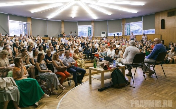 Зрители сначала слушали, а потом стали задавать вопросы, всё смелее и смелее разговаривая с известным психологом. Это был настоящий практикум общения – настолько полно открывались люди в разговоре: обнажали свои чувства, говорили откровенно, не соблюдая «авторитетов». Юлия Борисовна – категорическая противница любых авторитетов, которые навязаны сверху. Она искренне наслаждалась свободой в разговоре с собеседниками.
