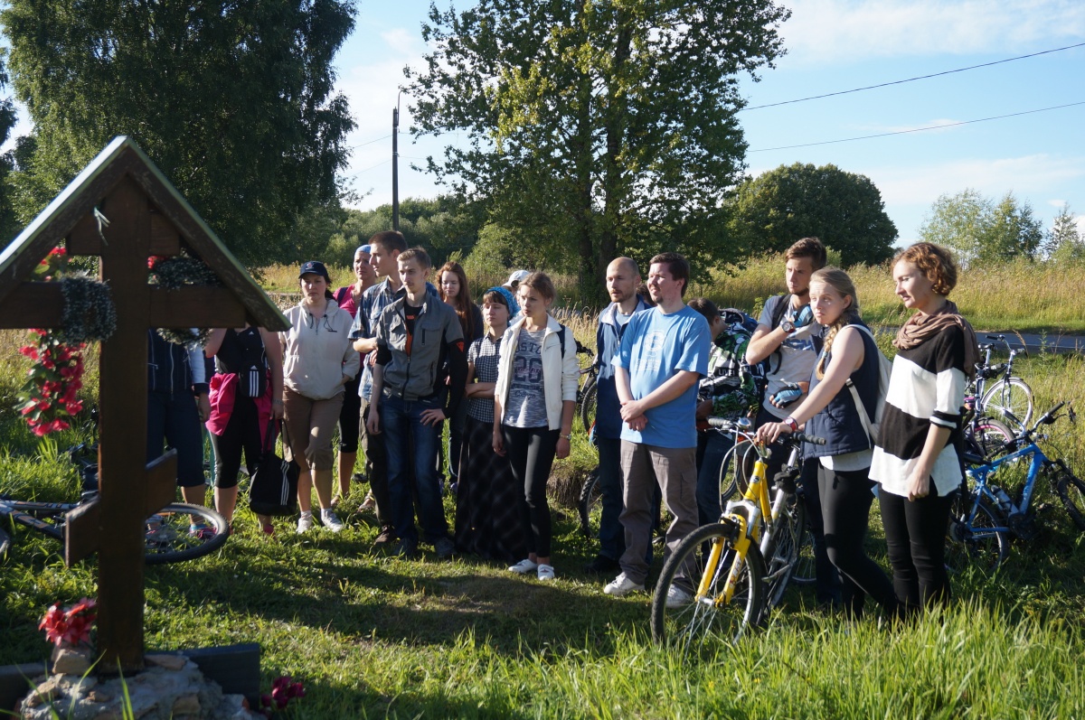 Завершился велопробег у строящегося храма страстотерпца царевича Алексия. Храм находится рядом с разрушенной императорской дачей Николая II. Здесь 30 июля (12 августа по нов. ст.) 1904 года родился долгожданный наследник Престола.