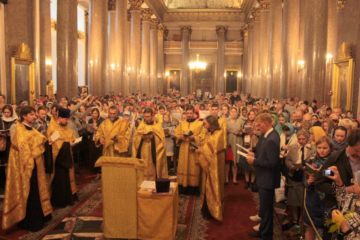 Общегородской молебен о даровании супружества и устроении семейной жизниВ Казанском кафедральном соборе вечером 8 июля состоялся общегородской молебен святым благоверным князю Петру и княгине Февронии Муромским о даровании супружества и устроении семейной жизни. На совместную молитву собрались молодые люди и девушки, желающие обрести семейное счастье. После приветственного слова протоиерея Константина Головатского, председателя отдела по делам молодежи Санкт-Петербургской епархии, начался молебен с акафистом. В общей молитве смог поучаствовать каждый. На входе волонтеры Епархиальный молодежной добровольческий службы раздавали тексты акафиста святым Петру и Февронии. Вместе с прихожанами горячо молились и их пастыри протоиерей Александр Дягилев, председатель комиссии по вопросам семьи, защиты материнства и детства Санкт-Петербургской епархии, протоиерей Константин Головатский, председатель отдела по делам молодежи Санкт-Петербургской епархии, иерей Дмитрий Дмитриев, заместитель председателя отдела по делам молодежи, руководитель добровольческий службы; иерей Георгий Якуба, помощник благочинного по работе с молодежью в Красносельском благочинии; диакон Сергий Учанейшвили, диакон Даниил Бегаев.