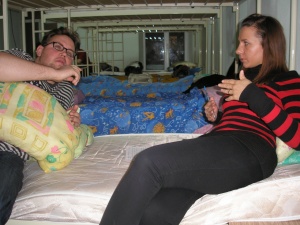 Паломническая поездка участников православного молодежного клуба при храме «Знамение – Абалацкая» в город Томск, февраль 2011С 5 по 6 февраля 2011 года, по благословению иерея Андрей Ромашко - главы отдела по окормлению молодежи Новосибирской епархии, состоялась паломническая поездка в город Томск молодых участников православных молодежных встреч при храме «Знамение - Абалацкая». Все началось с радостного: «Наконец-то, мы дома!», которое прозвучало из уст Сони Сигневич – активистки православного молодежного клуба «Знамение - Абалацкая» г. Новосибирска, когда большая часть актива клуба пересекли границу города Томска, начиная паломничество в этот прекрасный город. Каково было удивление многих участников клуба, впервые участвовавших в подобной паломнической поездке в Томск, когда все гостеприимство и заботу томичей они прочувствовали на себе, и ощущение «Мы дома», действительно, имело место быть. В 13 часов дня 5 февраля 2011 года, группа новосибирских «знаменцев» прибыли в город Томск. Радушно встретив новосибирцев, и разместив их в гостинице Томской семинарии, которая располагается в здании радом с храмом св. Александра Невского, представители молодежных движений Томской епархии, в лице Андрея Труша и семинариста Владимира Макаренко, подробно ознакомили «иногороднюю» молодежь с программой паломнической экскурсии. Однако, как выяснилось позднее, томичи запланировали для новосибирцев не только паломническую экскурсию, но и прогулку по городу с сопровождением гида, в лице, опять же, Андрея Труша. Все началось с прогулки по проспекту Ленина, который несколько лет назад, чуть было не переименовали в проспект Университетский, что было бы вполне оправдано. Действительно, такое количество вузов для столь небольшого города расположены на одном проспекте: это, конечно, и Томский государственный университет с его корпусами, и Томский политехнический университет, и Сибирский государственный медицинский университет и др. Андрей Труш, в ходе паломнической экскурсии, поведал новосибирцам историю ТГУ, которая самым непосредственным образом связанна с историей зарождения храмов в городе Томске. В момент открытия ТГУ, в его стенах уже на протяжении года действовала церковь во имя Казанской иконы Божией Матери. Еще в 1887 году был освящен домовой храм при Томском императорском университете. Наименование храма в честь иконы Казанской Божией Матери - отнюдь не случайное. Дело в том, что многие преподаватели, ранее, до приезда в Томск, являлись сотрудниками Томского Казанского университета. И по их желанию домовая церковь нового вуза была посвящена чтимой ими иконе. К сожалению, с 1920 года храм стал использоваться не по назначению. Сегодня в помещении храма - актовый зал ТГУ. Но и сейчас остается живой большая надежда на наступление того времени, когда в домовом храме Томского Императорского университета вновь зазвучат слова молитвы. Далее, шагая по «Университетскому» проспекту в сторону Богоявленского собора, паломническая группа из Новосибирска, познакомились с еще несколькими интересными достопримечательностями Томска: это скульптура под названием «Беременная», которая изображает беременную женщину. Выполнена она в авангардном стиле, и изображает тело матери, которое сделано из железных каркасов, сквозь которые виден ее будущий р